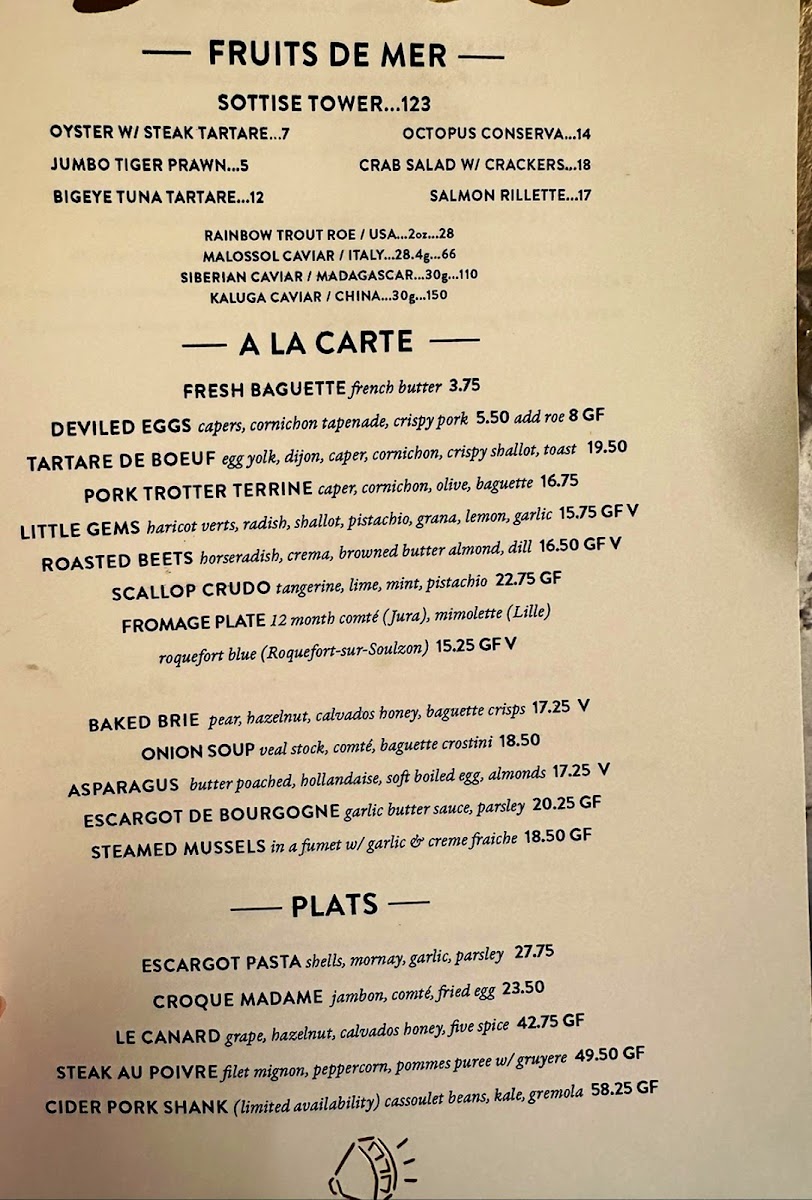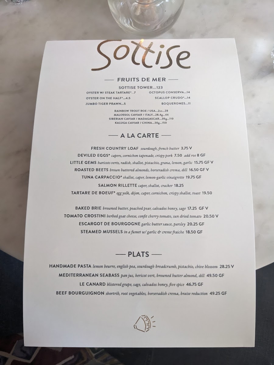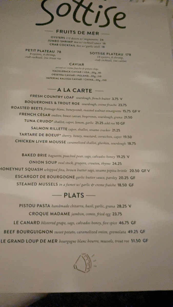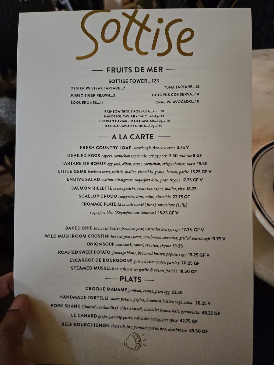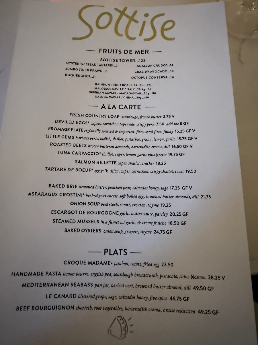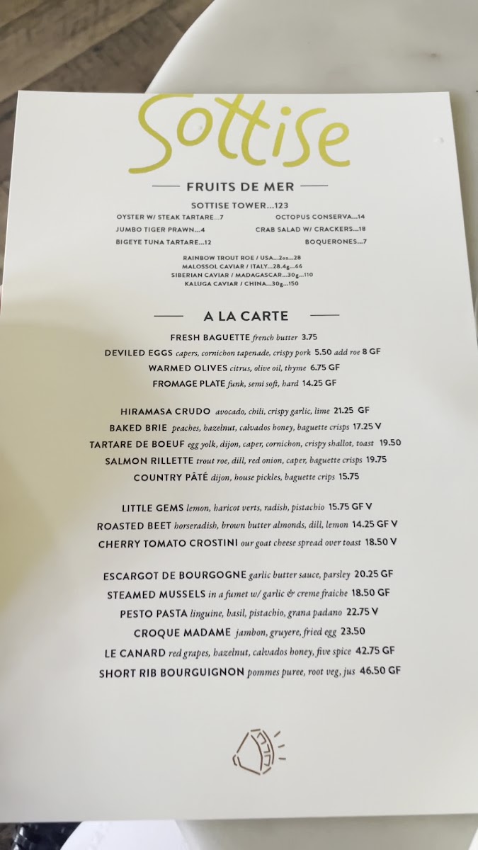 The menu also features seasonal specials, keeping things fresh and exciting with each visit. Whether you’re here for a casual lunch or a special dinner, the Sottise Menu ensures that every meal is an experience worth savoring.